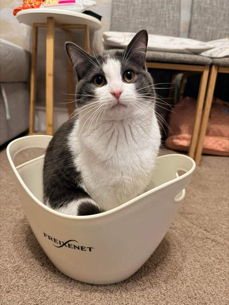 She’s very friendly and playful, and likes to come for a cuddle. She currently lives in a home with a dog and young children.
