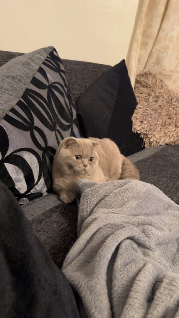 Lilac British shorthair kitten who just turned 7 months. Absolutely adorable, very playful and wants to cuddle all the time!