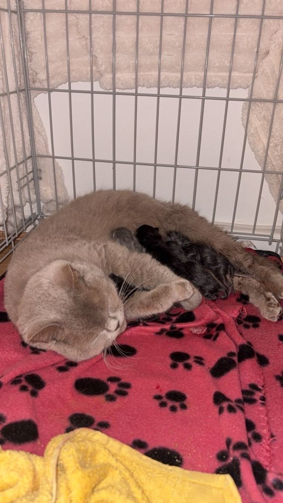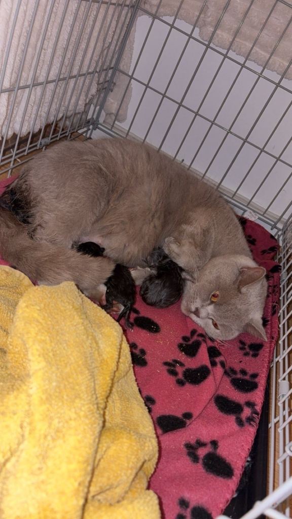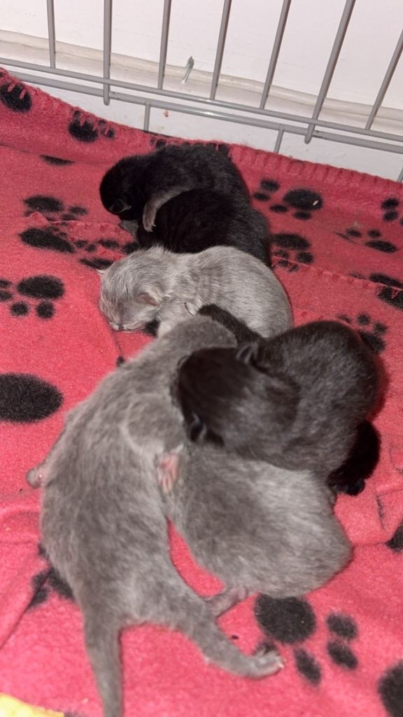 Beautiful litter of 6 British shorthair kittens, our perfect girl gave birth a week ago to 6 beautiful babies, with 3 blue and 3 black, these are full pedigree shorthair kittens however will NOT be registering them. Their mum is our lilac GCCF registered girl and dad is a black GCCF registered stud. The kittens will be brought up around children, dogs and cats and will be wormed, flead & checked by a vet at least once. They are currently 1 week old and will be ready to reserve at 5 weeks old. Please don’t hesitate to get in touch and reserve a beautiful baby. The kittens will come with a starter pack including toys, treats, food & a blanket. The kittens can be chipped upon request also. Once your kitten is reserved, weekly updates will be sent & you’re welcome to come and see them to reserve. Thank you!