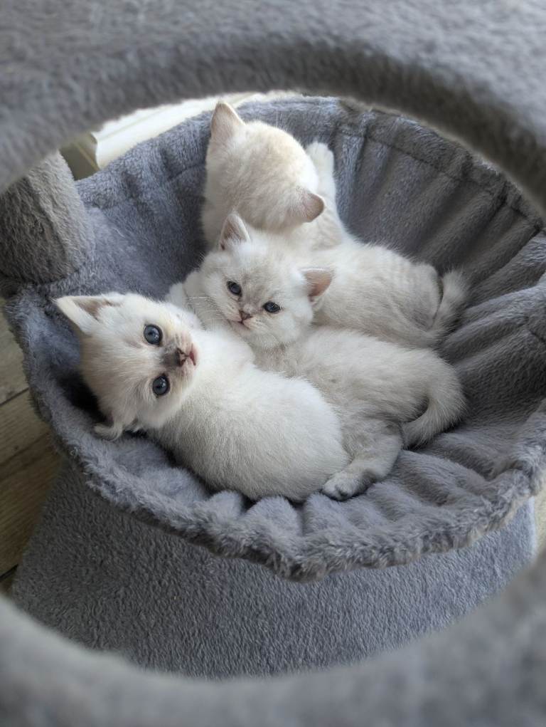 4 British shorthair silver tipped girls looking for forever loving homes.