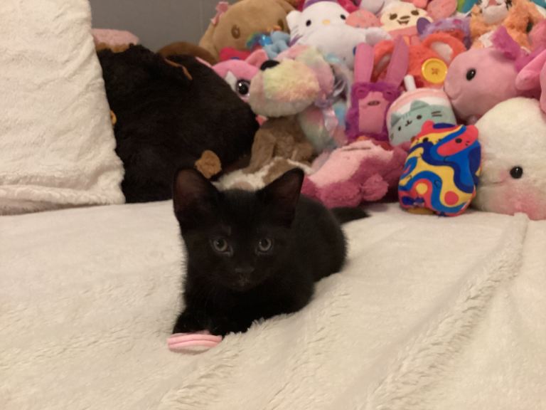 Posting for under a monthBritish shorthair mix black little kitten looking for a forever home 🎀