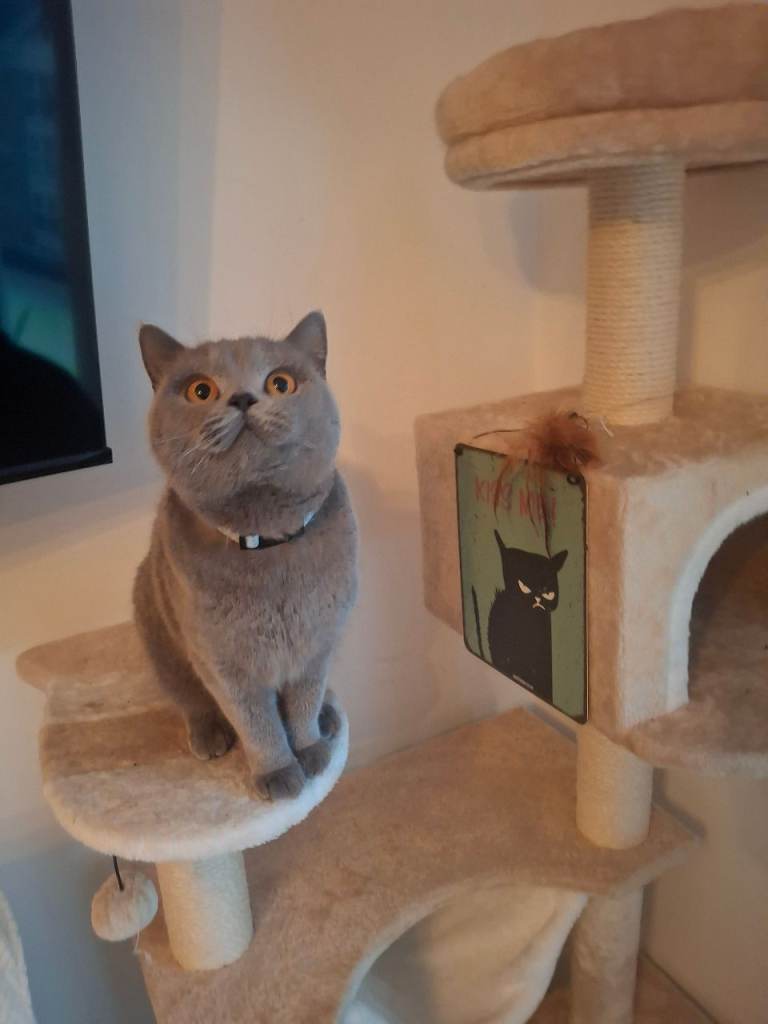 My cat's parents are TICA-certified. She's a beautiful British Shorthair GIRL, known for her fluffy coat, round faces, and calm, affectionate nature. These cats have large, expressive eyes and a sturdy, well-built build.