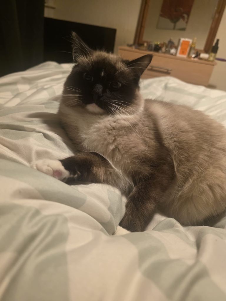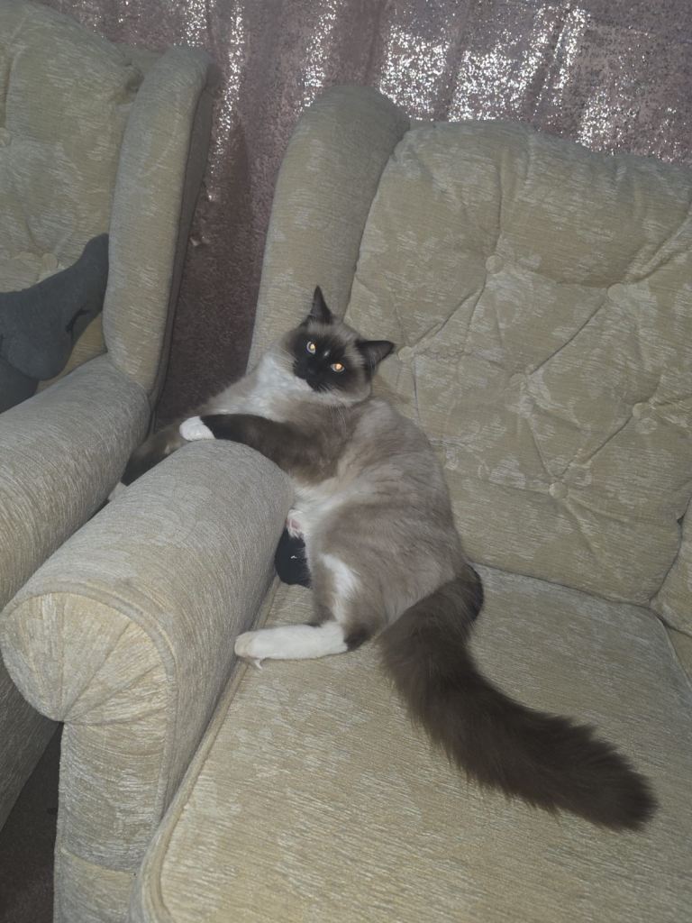 Male cat 9 months old ragdoll house cat potty trained
