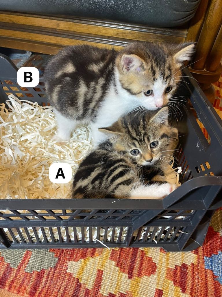 We have 2 lovely and playful female kittens who were born on 1 December 2025. The kittens are for sale at £350 each. Each kitten has been labelled on their photos.