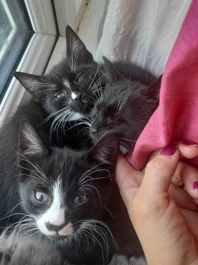 2 females 1 male sibling kittens resdy for a new loving home. Currently mobing and unable to bring them with me. They eat both dry and wet food completely litter trained.
