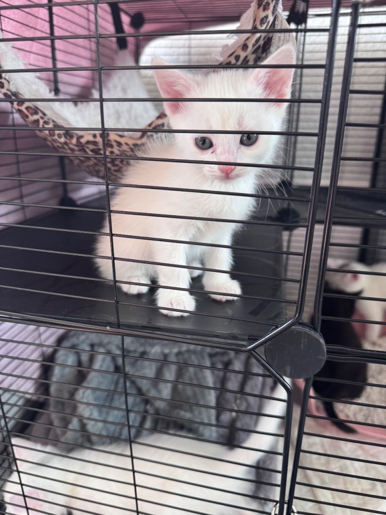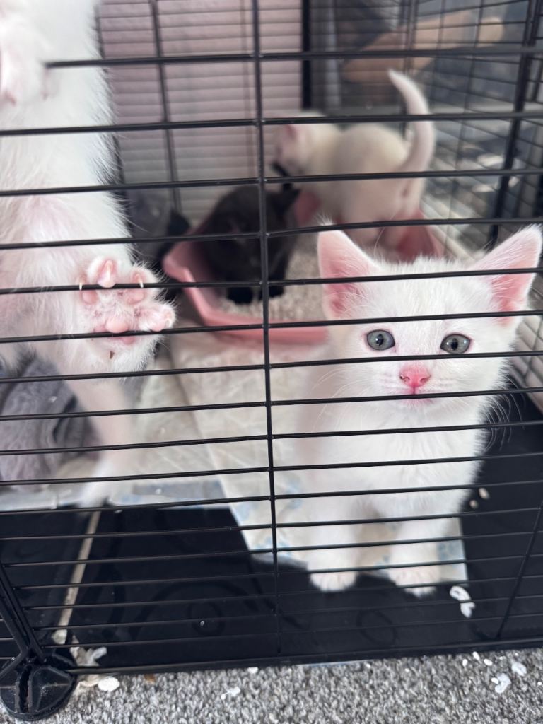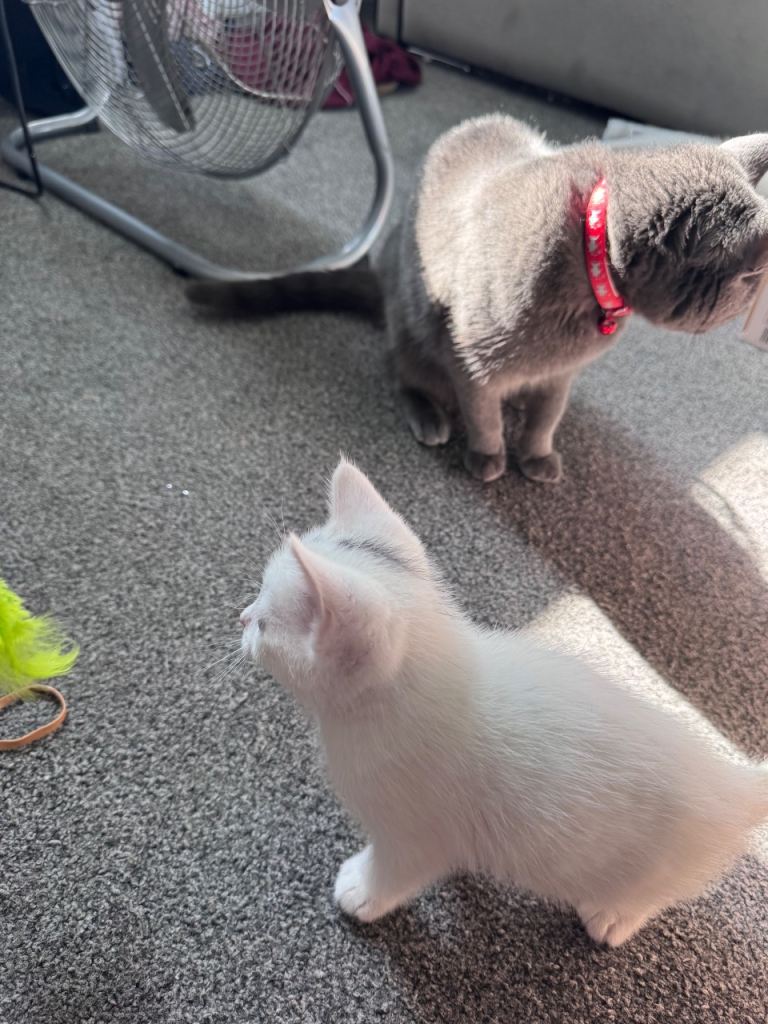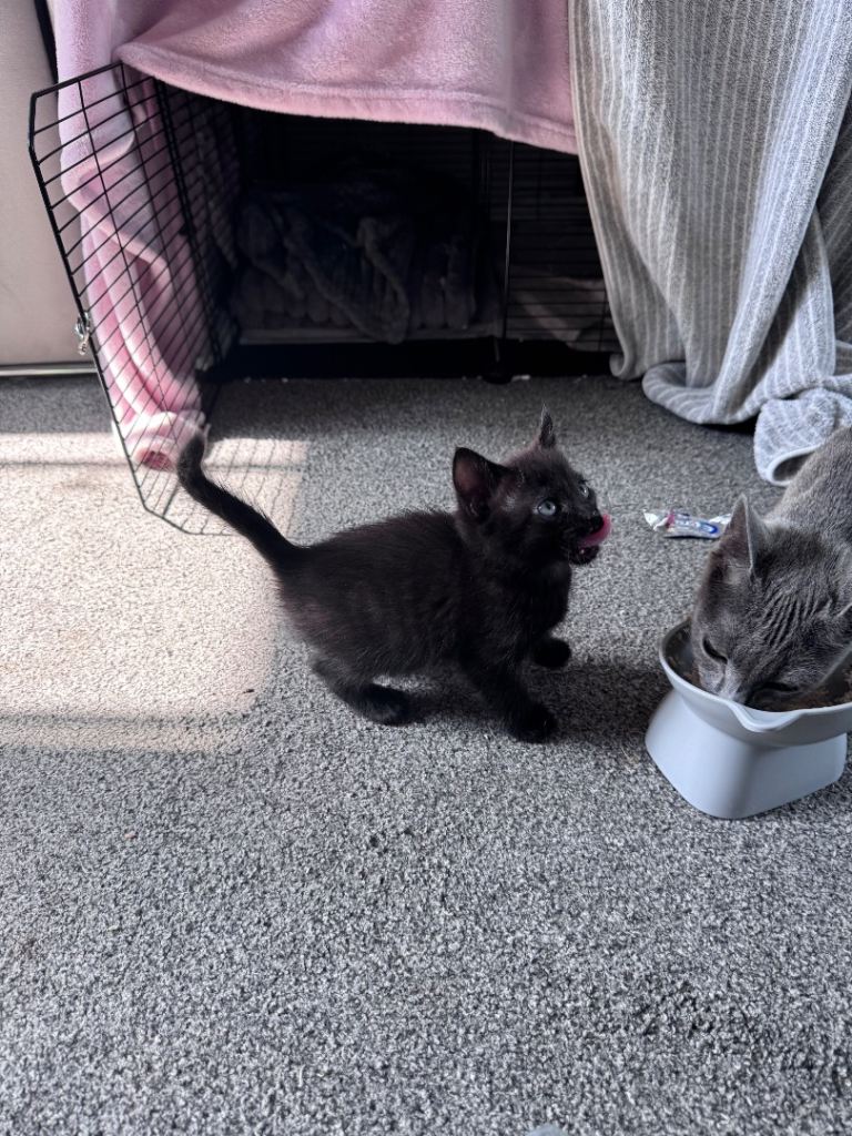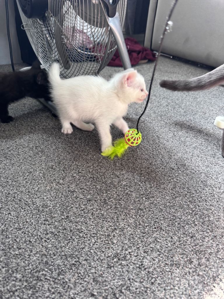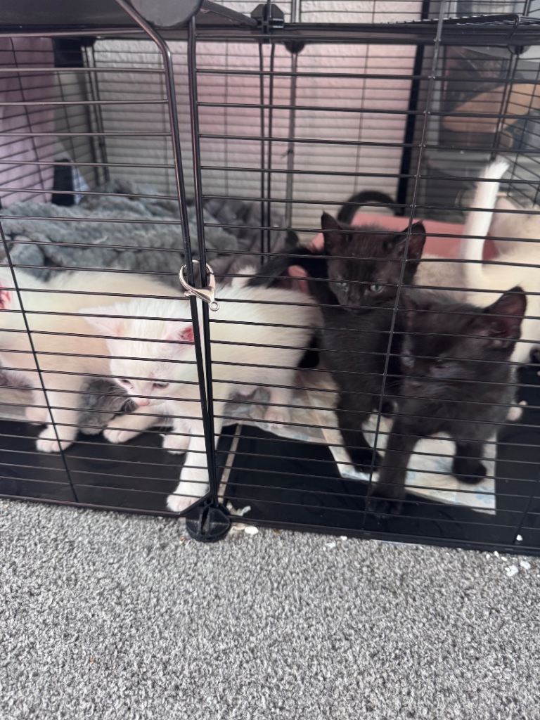 Cute little Black Russian blue male kittens two white kittens two white kittens male need a loving home and welcoming homes mother is a pure Russian blue, very playful and energetic been litter trained and weaned, deflead and wormed treatements come with own litter tray and food bowl, very playful and friendly, also if local willing to drop kitten off