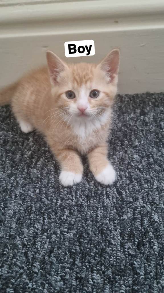 Domestic Shorthair kittens 8 weeks old both ginger very playful around kids perfectly healthy ready for pick up as soon as you message or when you want one boy one girl both Potty trained and recently started to eat normal cat food indoor kittens and perfectly healthy.