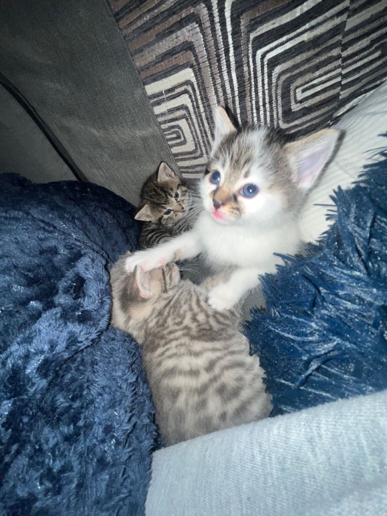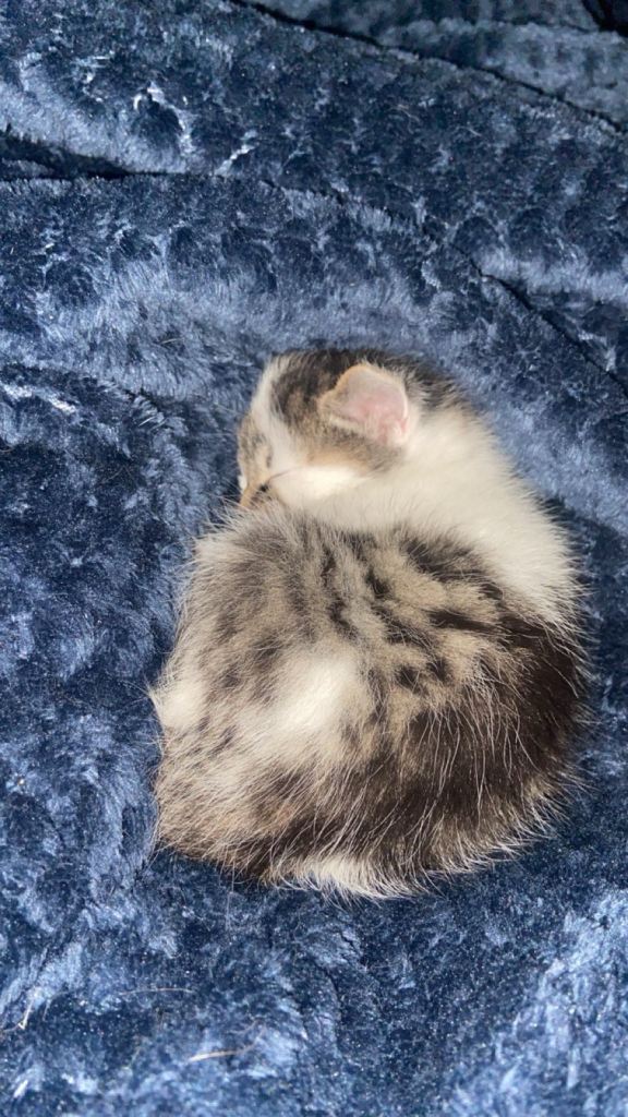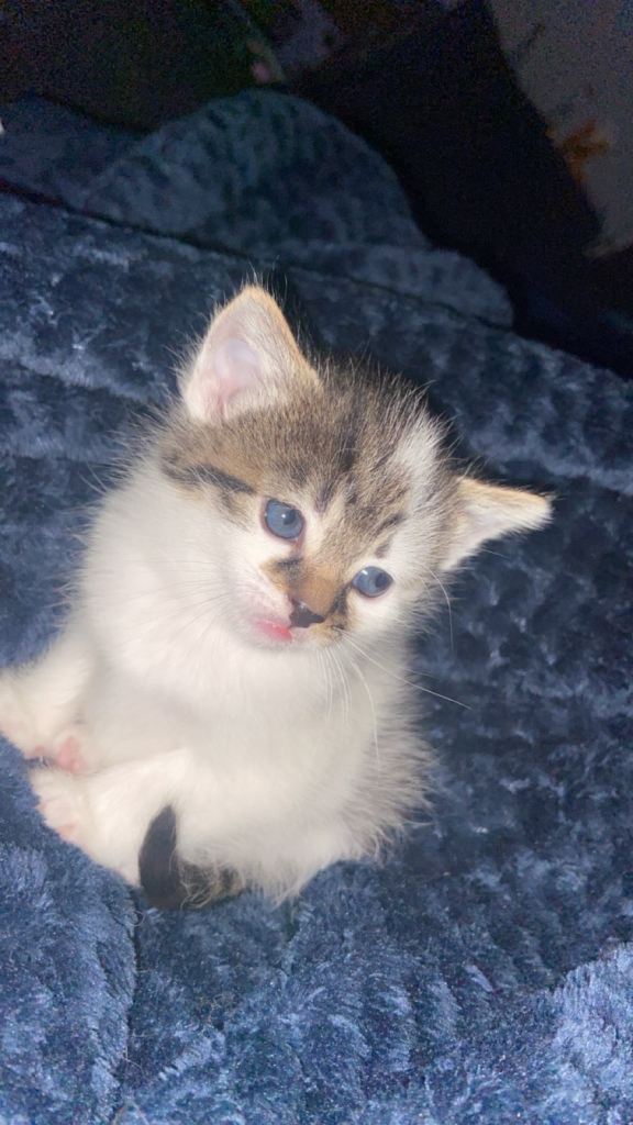 Gorgeous white tabby kitten looking for her forever home.