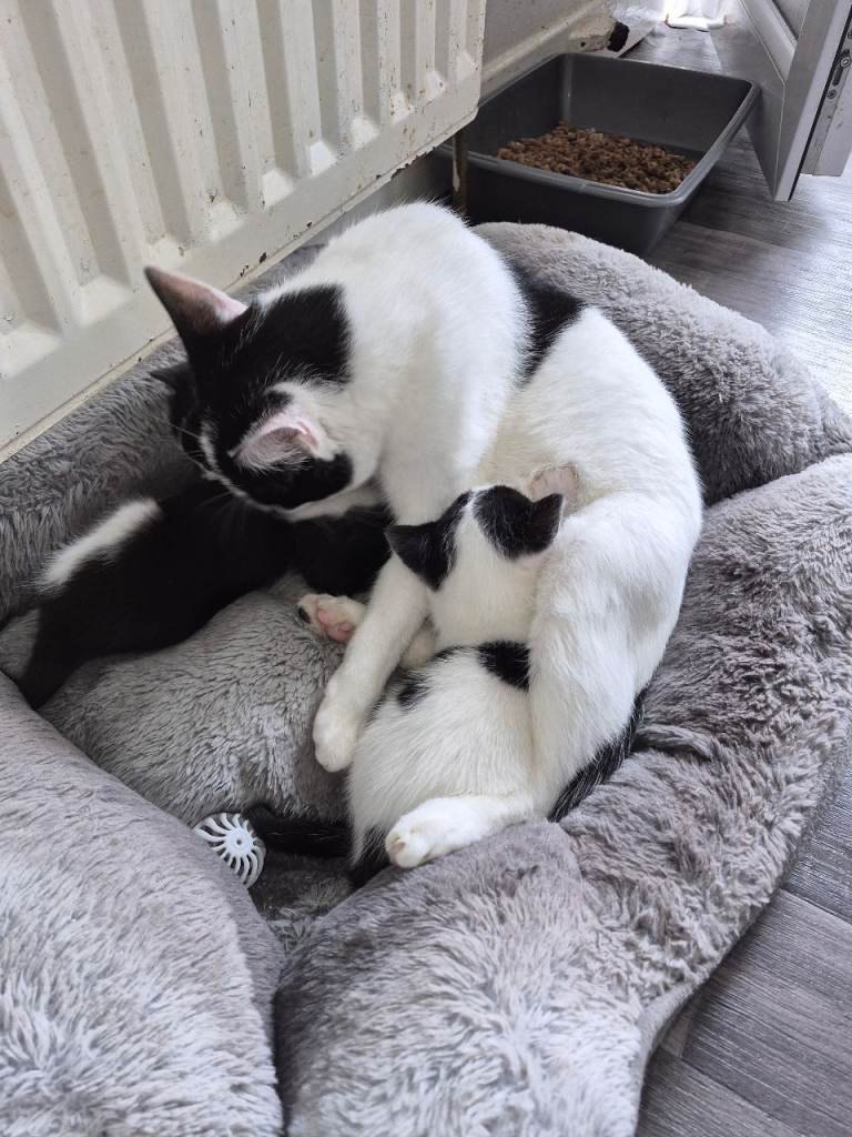 I have 1 female kitten left from a litter of 3 she's so adorable and playful and is used to being around people and other cats..she's looking for a loving,affectionate forever home 7 weeks old..feeding great (not from mum) and using the litter tray, deflead...a deposit of £30 will be required to secure her and please genuine interest only..any questions welcome. Ready to leave sun 19th April