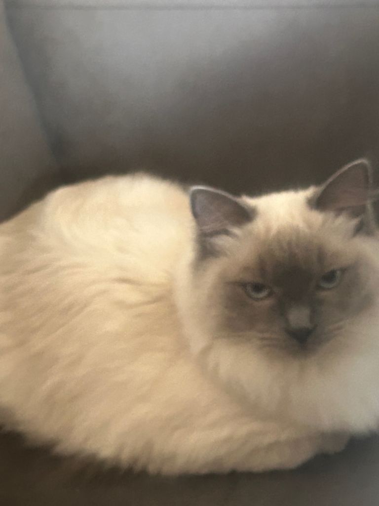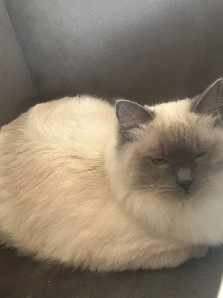 I’m having to sell my aunts 6 month ragdoll as her mum has become ill and has to look after her. She is a female blue point ragdoll and is very affectionate and loves cuddles and sitting on your lap.