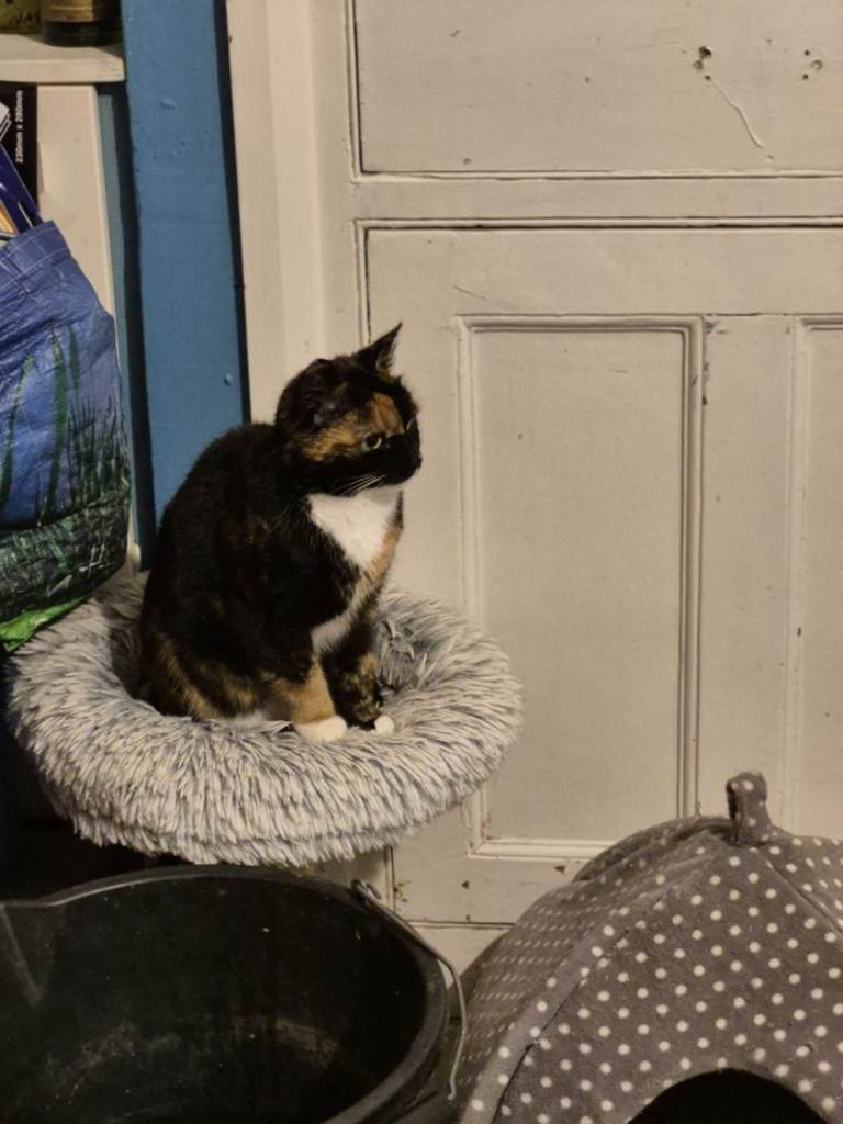Posting for under a monthFemale tortoiseshell and white cat 2 years