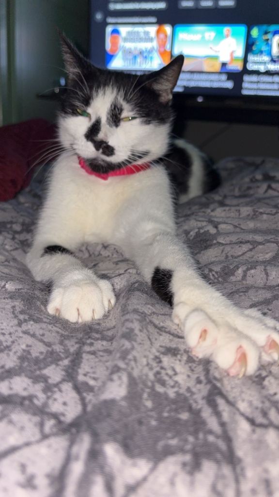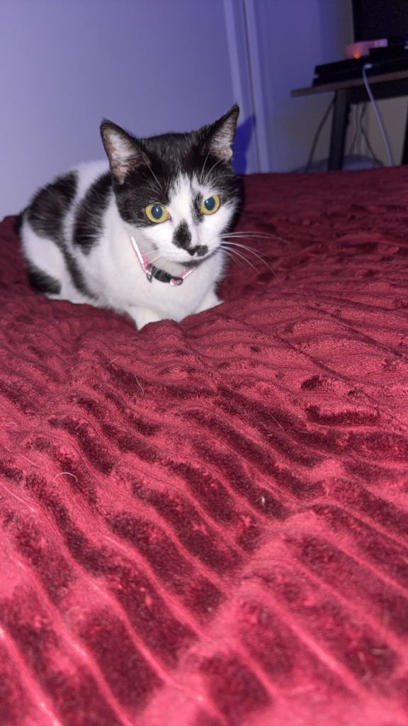 This is fluffy she is around 3 years old I’m not too sure on the age she is a lovely chilled back cat she loves being stroked and loves her cat tree she is an independent cat unfortunately due to my grandma passing away she’s at my house and is looking for a lovely home as she doesn’t get along with my cat .
