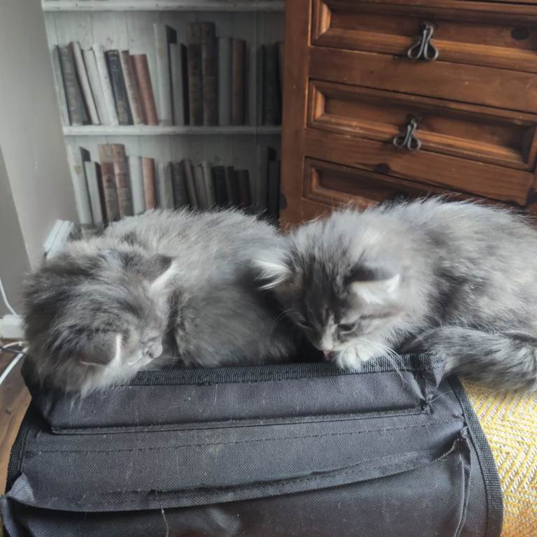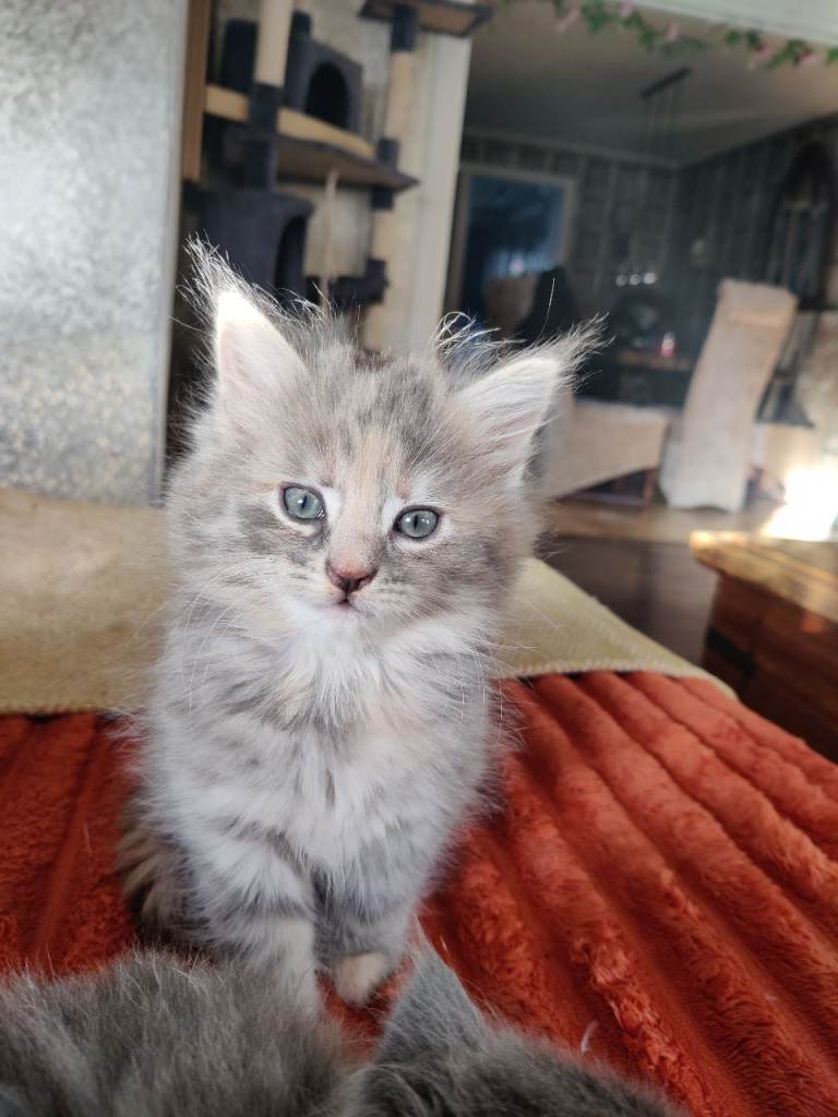 9 week old maincoone x Russian blue x kittens looking for forever home.