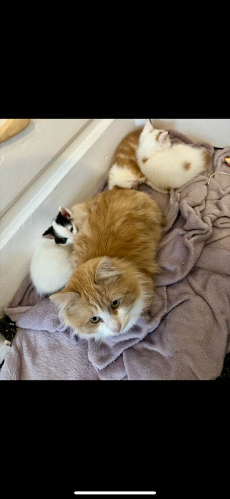 Mum and Dad are family pets. Kitten can be seen with parents. Kittens are good with kids and other pets.