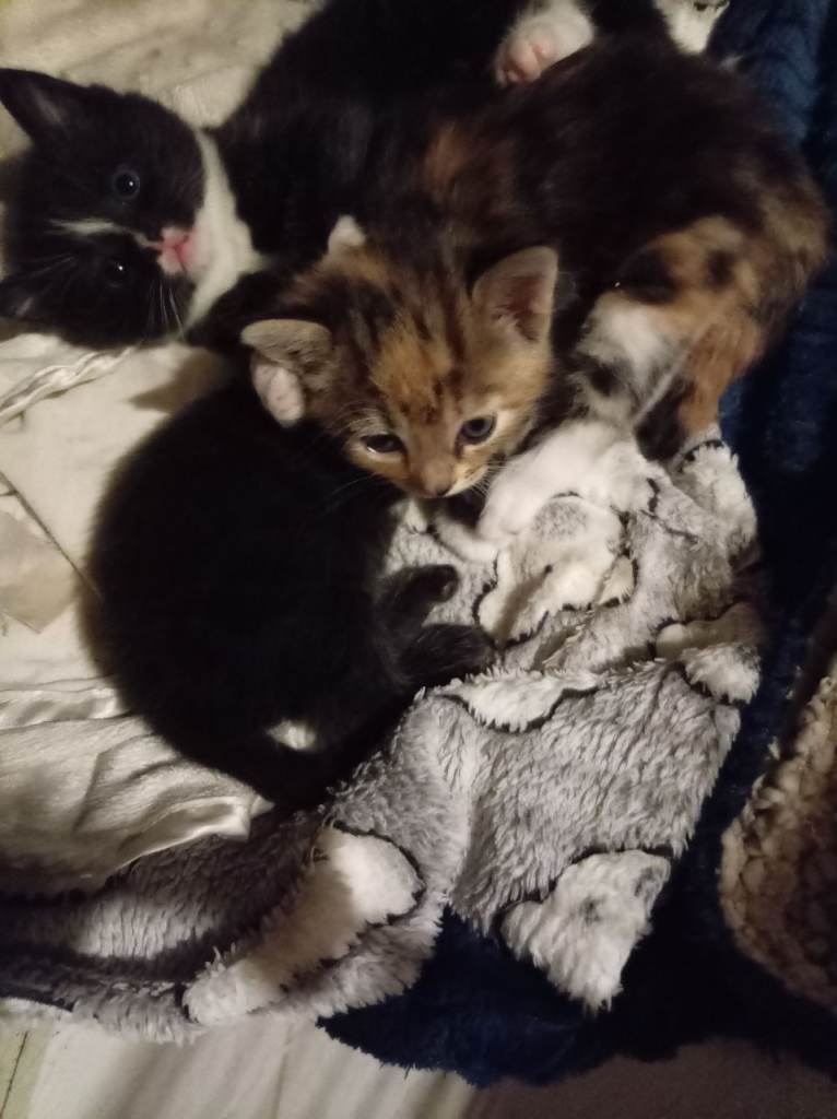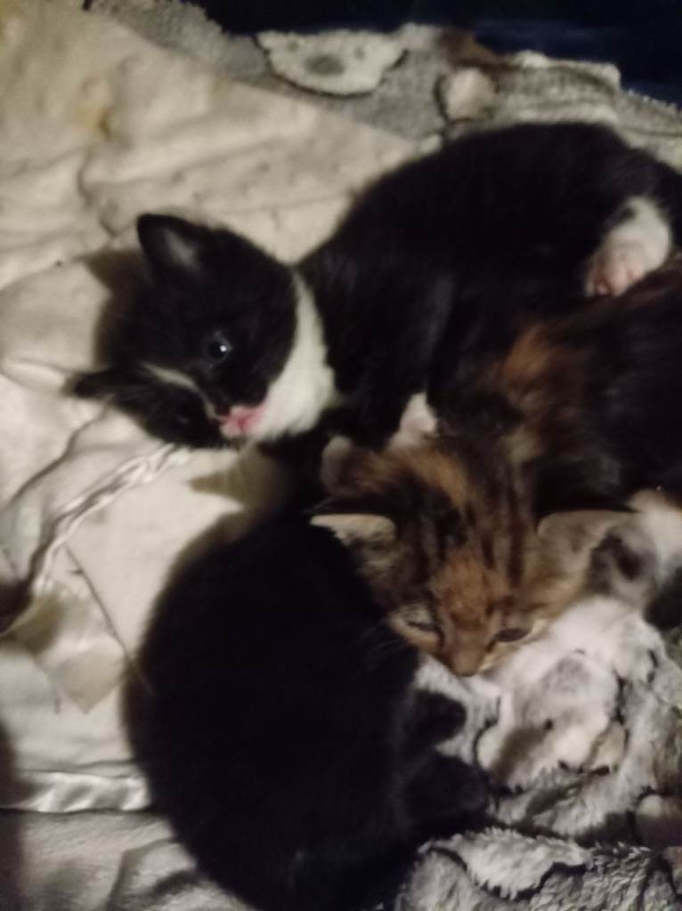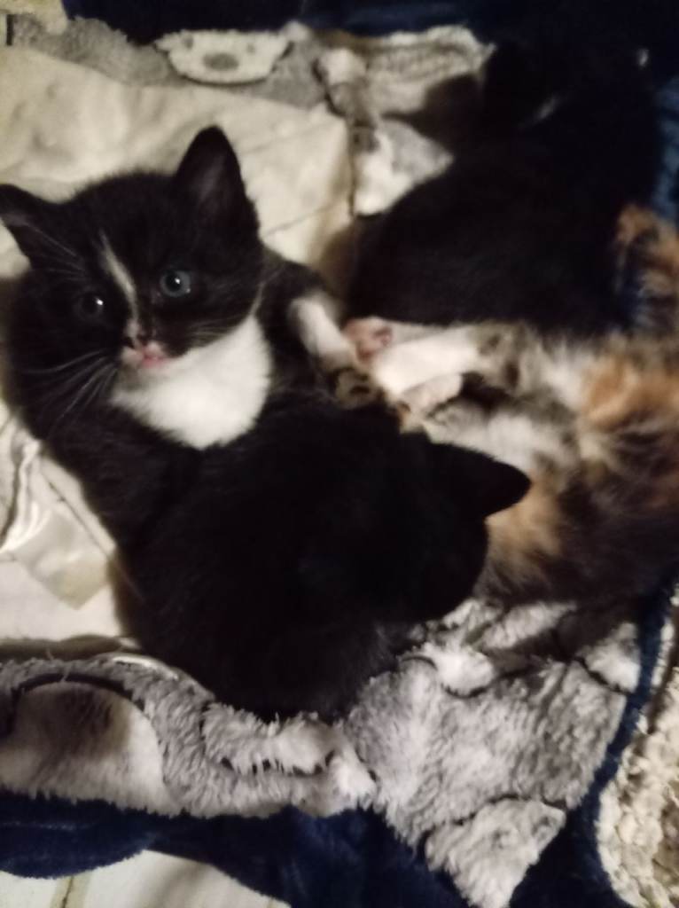 Four mixed breed British short hair two black and white one black with a white patch one calico. I am advertising these kittens early because I want to find them their loving forever homes. They are super cute friendly and very calm. Just like their parents. All kittens Will be weaned, flead, wormed, litter trained. Vet checked and also microchipped. The mum is a cacilo dad is a British short hair both parents are indoor much loved family members. Kittens will leave with a blanket with mum scent on. Viewings are welcome. Small deposit to secure your kitten. Any questions please feel free to contact me