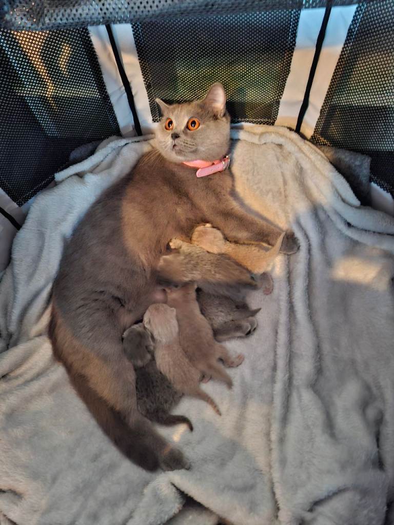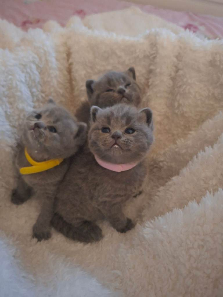 Proud to announce my beautiful queen Diva has has produced 3 beautiful fawn and 3 blue kittens 3 boys and 3 girls her very first litter These beautiful fur babies will have had the very best start to life no expense spared Kittens have been raised in family home so used to household noises and will be very well socialised Kittens will in time be weaned and fed on a raw chicken diet as well as quality dried kitten food Diva is going to be the most amazing mummy you are very welcome to meet her at the same time as viewing her kittens Diva is absolutely stunning she has the most beautiful amber eyes and blue plush coat she an amazing temperament which you will see when viewing All kittens will leave me 🐾weaned 🐾litter trained 🐾vet checked at least twice, 🐾registered non active with the GCCF 🐾with 5 generation Pedigree Certificate 🐾fully vaccinated 🐾microchipped 🐾wormed 🐾flea treated as a precaution 🐾with 5 weeks pet insurance 🐾also with generous kitten packs including blanket, toys and food they are on to help them settle in their new homes Kittens will be ready to leave from sunday 29th march when they will 13 weeks old As recommended by GCCF guidelines Please call anytime for more information Deposit is £300 non refundable