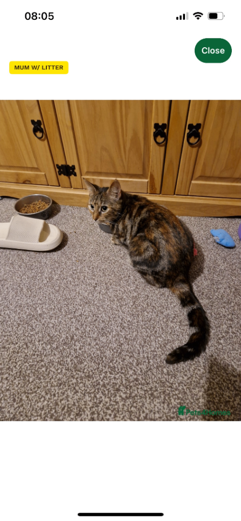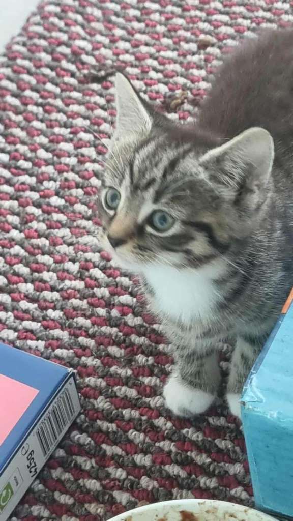 Unfortunately we only got him two days ago but my partner has had a bad reaction to him so we won’t be able to keep him. He is the most cuddly adorable kitten with a loud purr and loves snuggling up to you for cuddles. He has been treated for worms and fleas by his breeders.