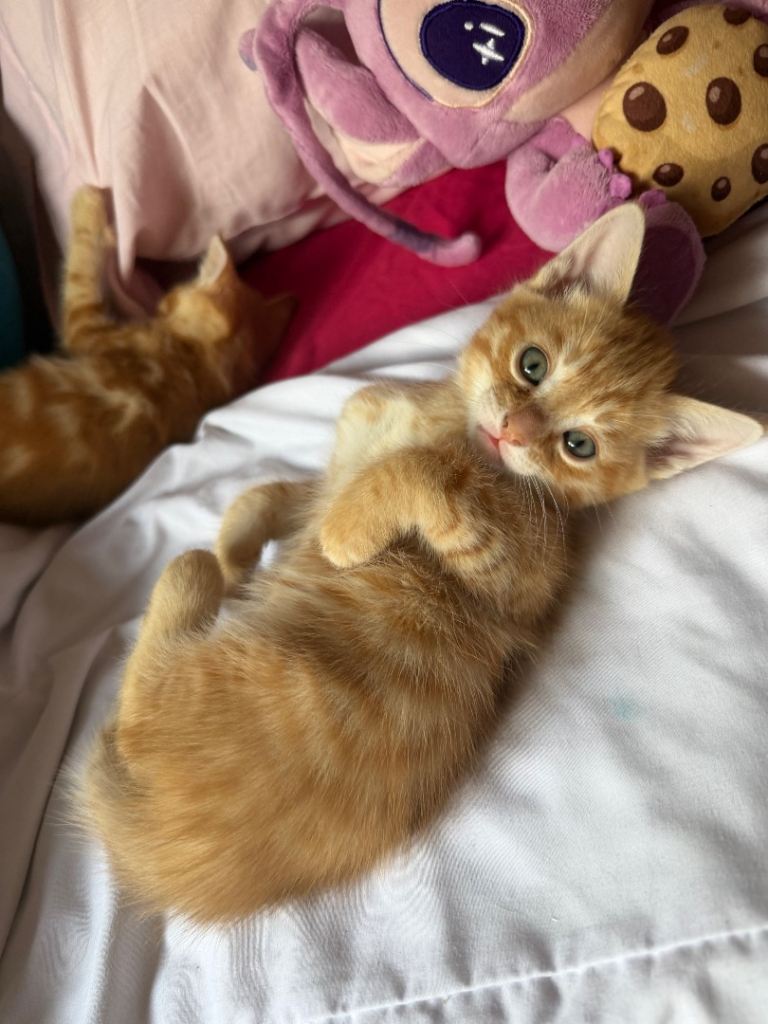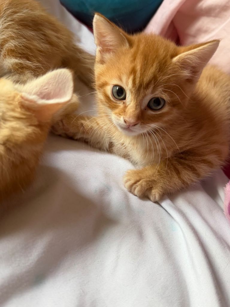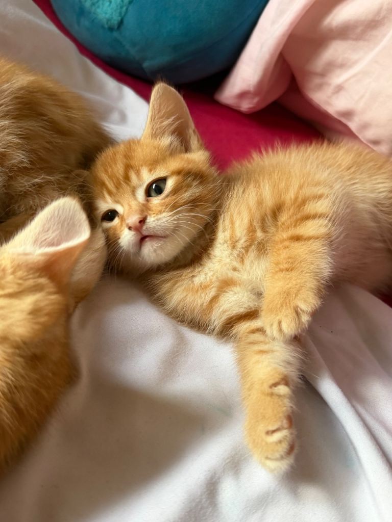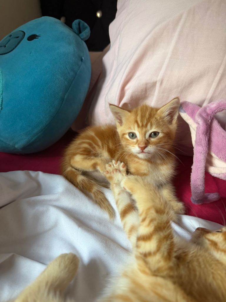 3 Ginger kittens they are litter training , fleas and wormed treatment. just don't have the vacines. They eat and drink alone.