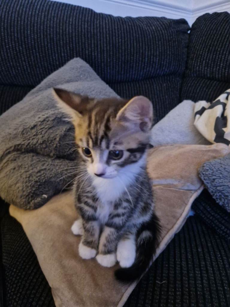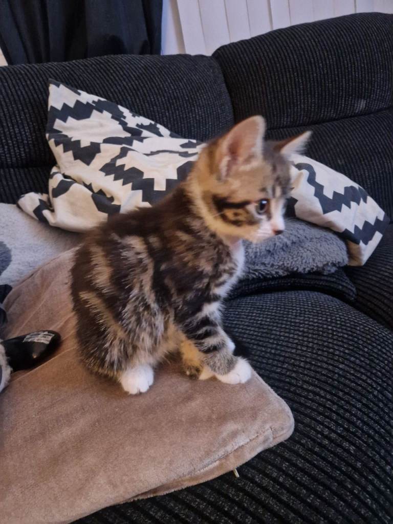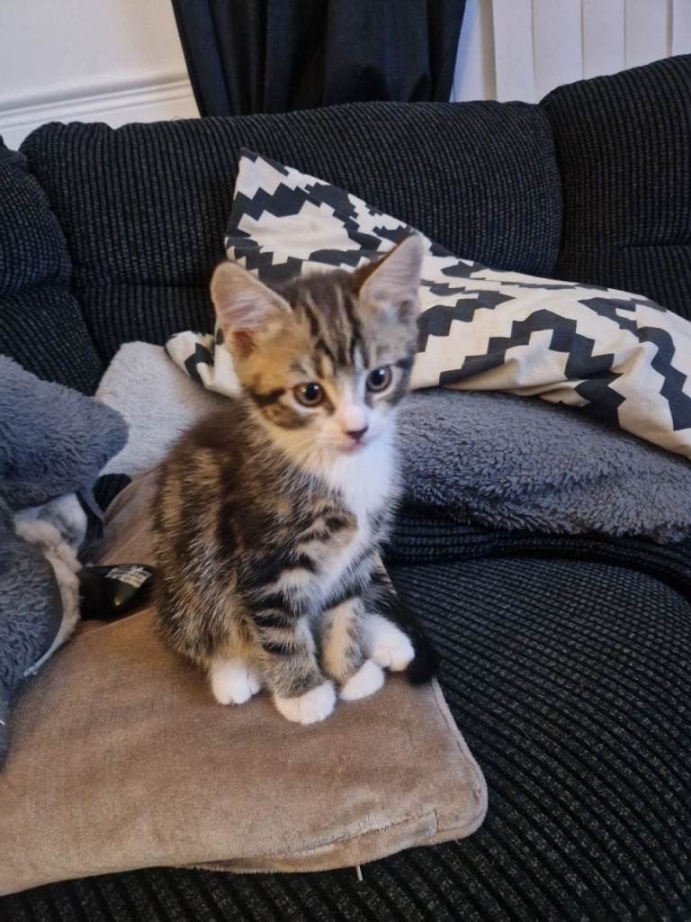 Very cute female tabby kitten ready for her new home.