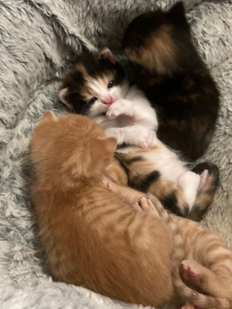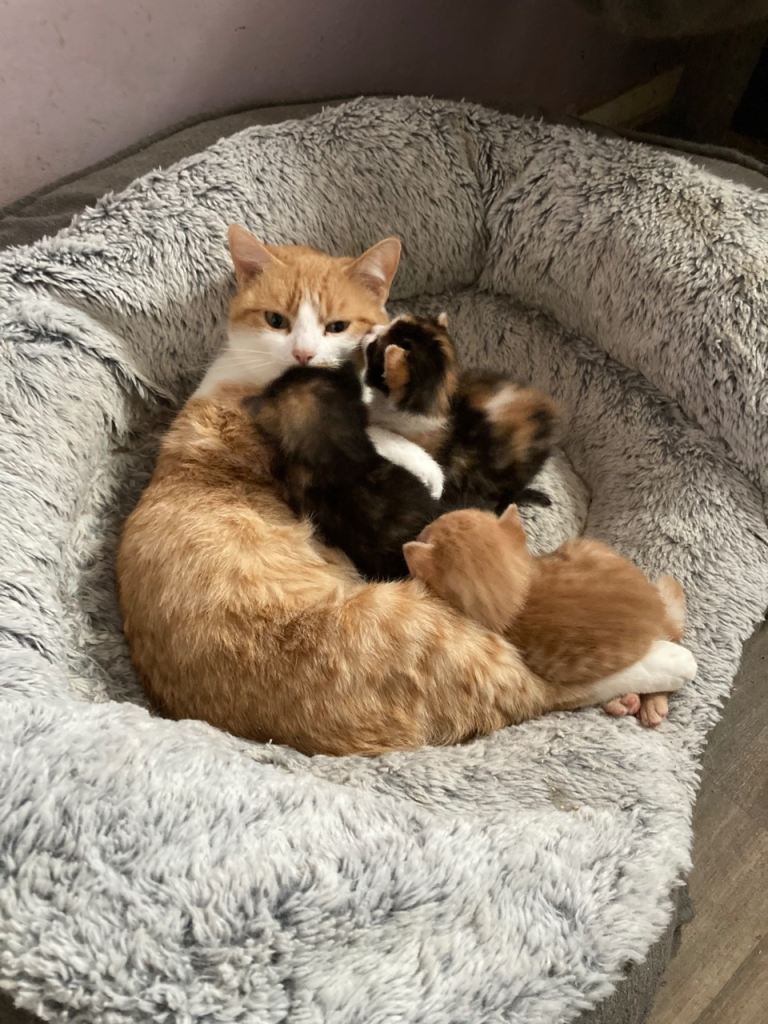 Two ginger boys, tortoiseshell girl and one tortoiseshell and white girl. Litter trained and eating well, flead and wormed regularly, very friendly and playful, they have been microchipped