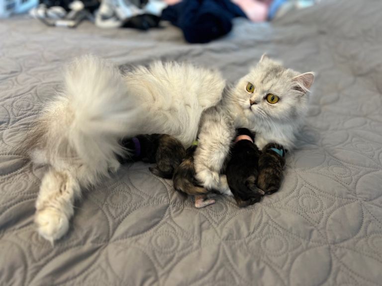 Mum is a beautiful chinchilla Persian and daddy is a sunning white Persian. They are both my family pets and can be seen with the kittens and I'm happy to send more photographs and FaceTime/video call when they have been reserved.
