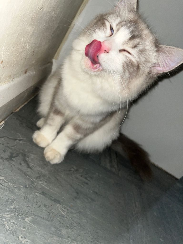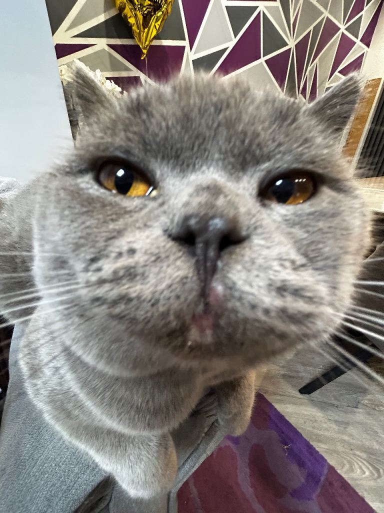 Beautiful 1-year-old grey British Shorthair looking for a loving new home. He has the classic plush coat, round face, and big expressive eyes the breed is known for. Very calm, affectionate, and well-mannered—enjoys relaxing, gentle play, and being around people. Healthy and well cared for, litter trained, and used to living indoors. This cat would be a great companion for a quiet home or a family who can give lots of love and attention.