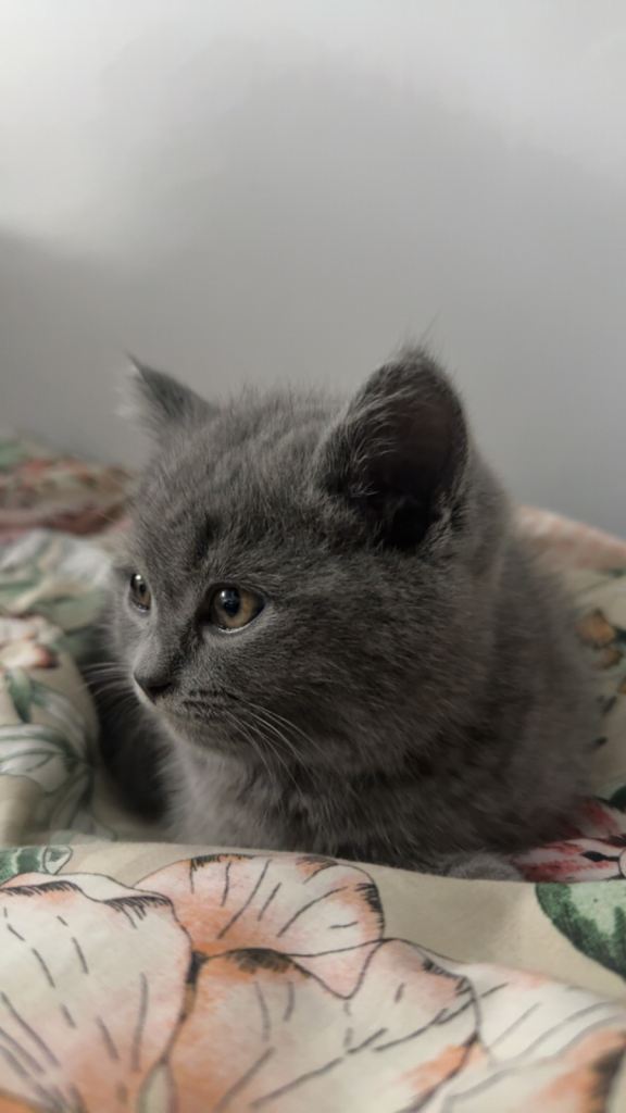 I viewed him with his mother and father and litter mates from the breeder before purchasing him mother is a lilac bsh and dad is a blue stud. Mylo was born on 15/11/2025.
