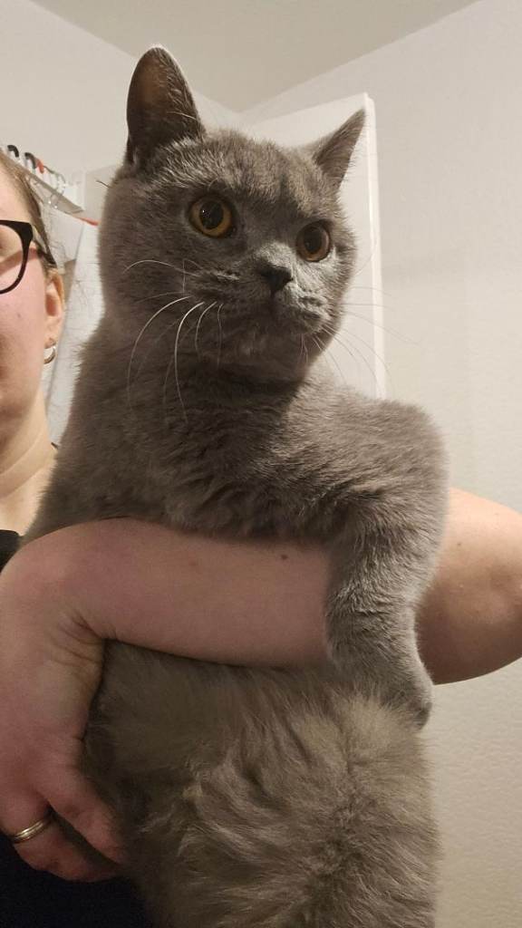 Our girl, pure British short hair in grey is looking for a new home. Despite our best efforts she does not get on with one of our cats. This is causing her stress and anxiety, resulting in hissing and fights.