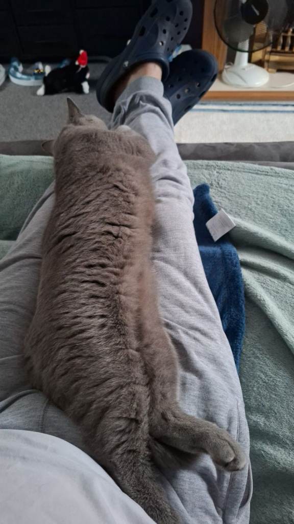 She loves to lay on your legs or feet, sleep, watch telly and any dangling toys but most of all she loves chin rubs