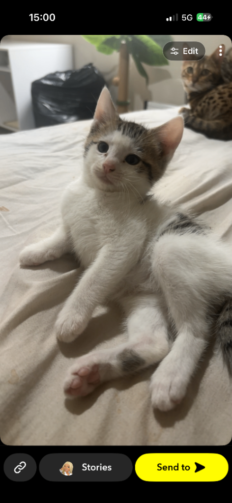 Ready to go to a loving home next week ,kitten has a been flead and wormed and checked over by a vet .mother is a full Bengal and father is a tuxedo :)
