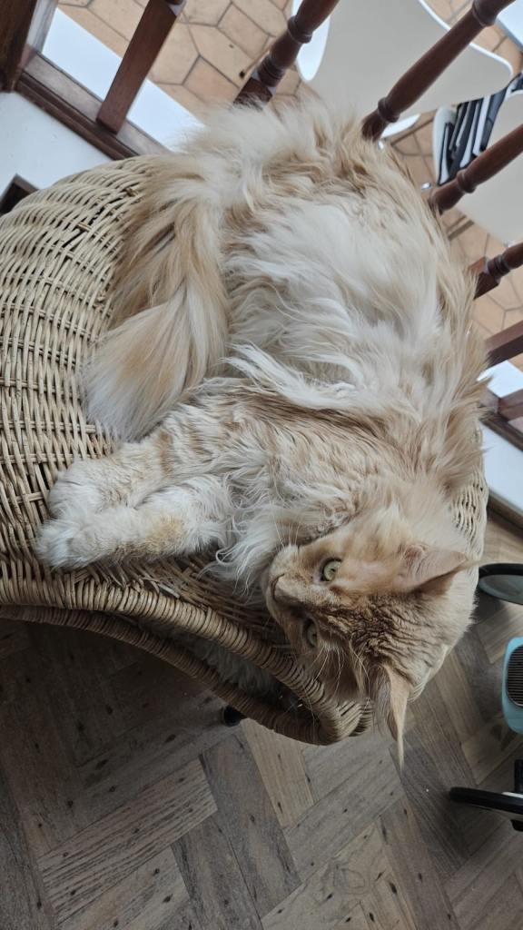 The mother is a Ragdoll and can be seen, as she is our family cat. The father is a Maine Coon from a breeding stud.