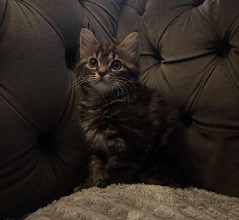 Beautiful long haired fluffy female tabby kitten looking for her forever home. Born on 17th November 2025. Flead and wormed. She is 10 weeks old ready to leave now. Fully litter trained and eating solids. Mum is our pet but unfortunately we can’t keep the kitten.