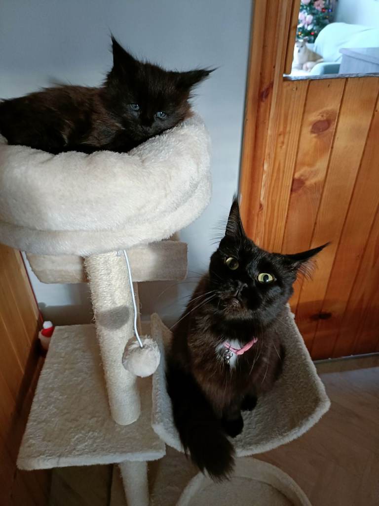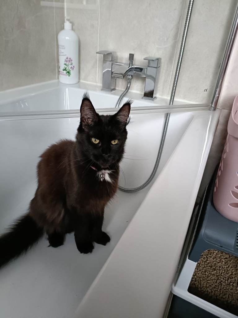 Main coon male 16 weeks old brought up with dogs other cats very sociable.