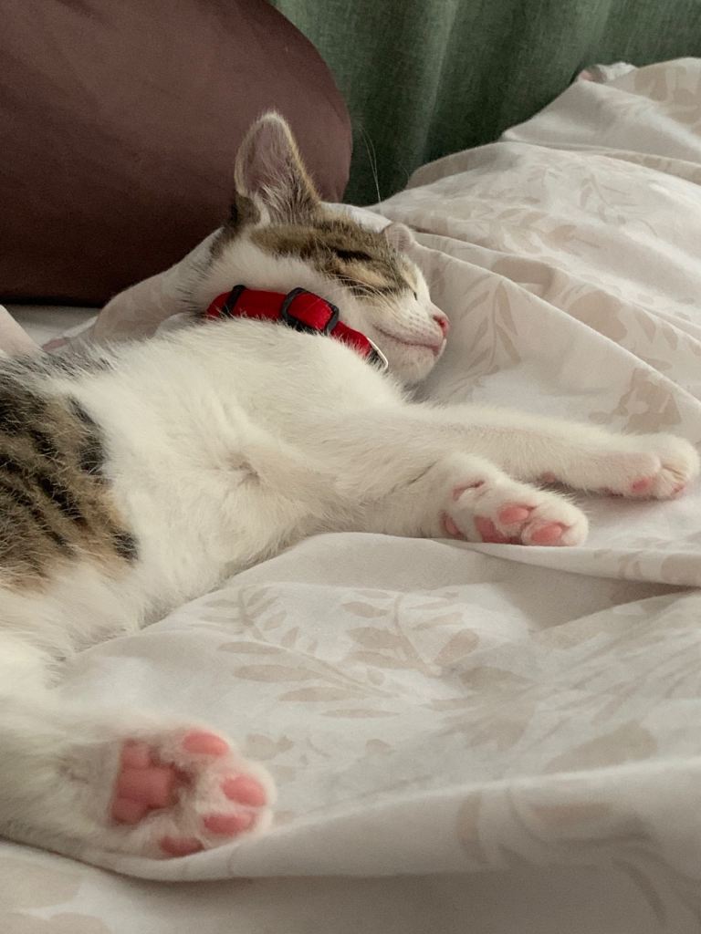 Every morning I discover him sleeping on my head rest 🥹 please only take him if you are a pet lover , in returns snickers would love you back.