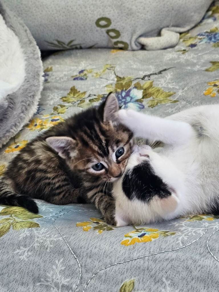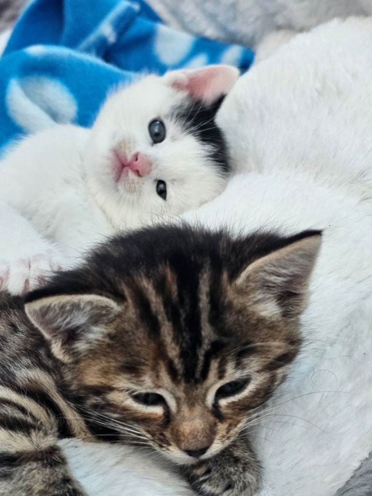 8 weeks old kitten they are sisters and need new home together. Healthy litter trained . Lovely friendly kitten.