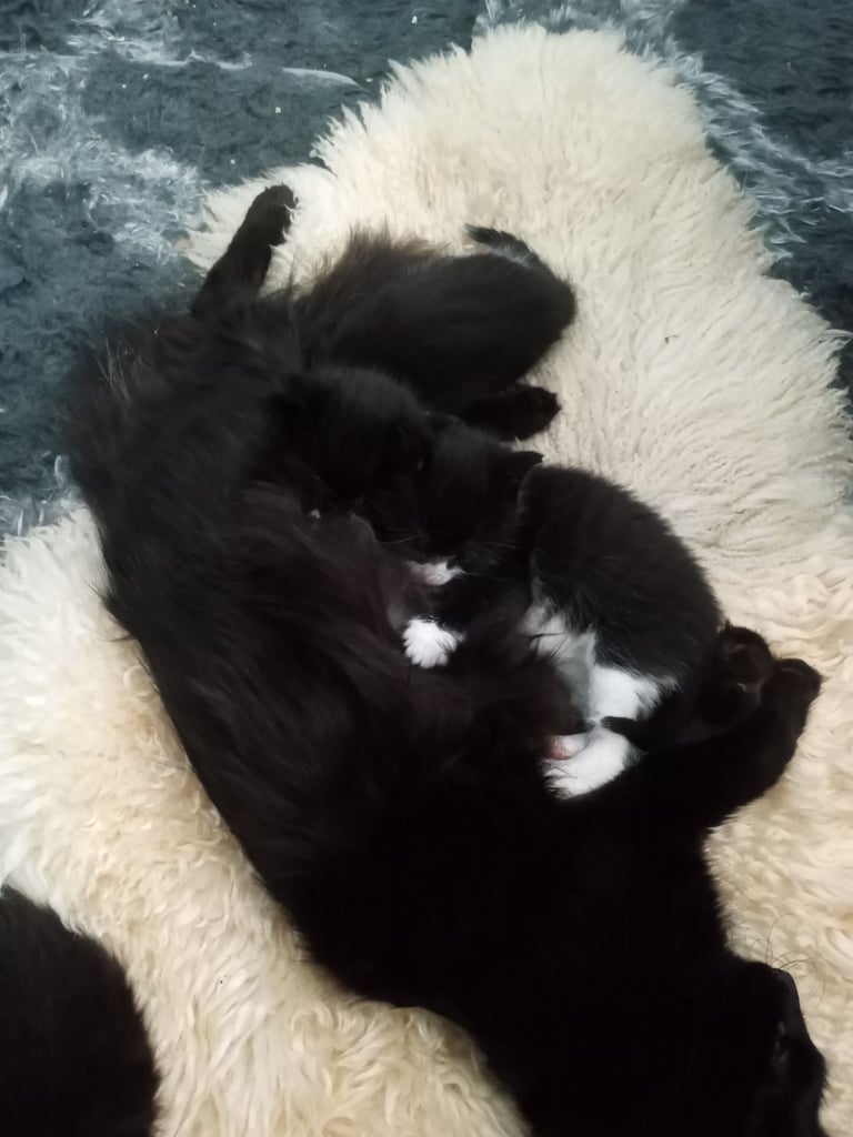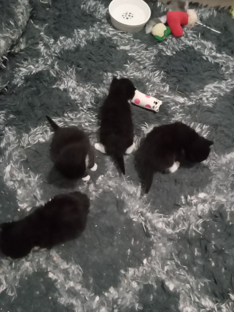 2 male 2 female kittens 7 weeks old at posting litter trained and eating well ready in 1 weeks time mother can be seen shes black and half maine coon