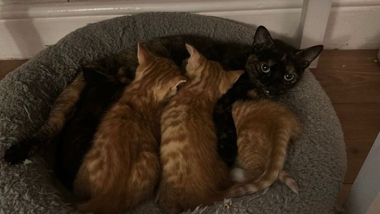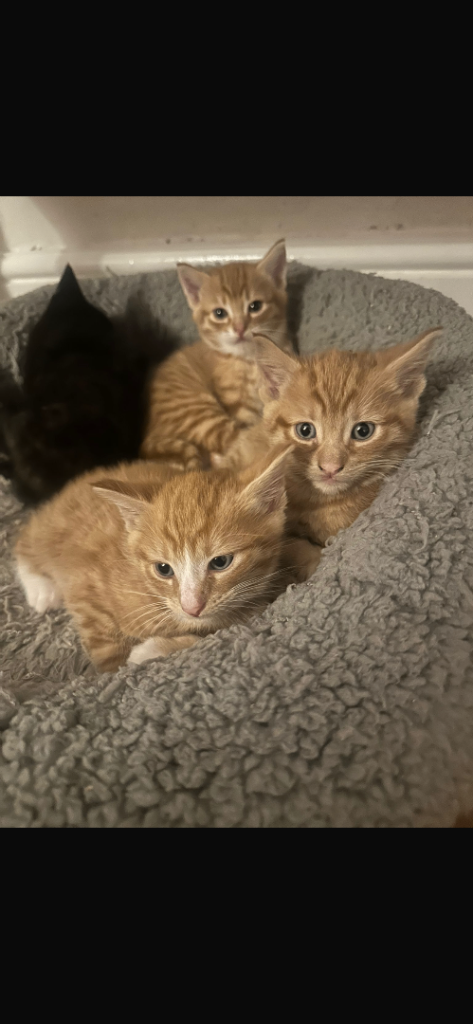 4 kittens, 3 ginger males, 1 black and ginger female.