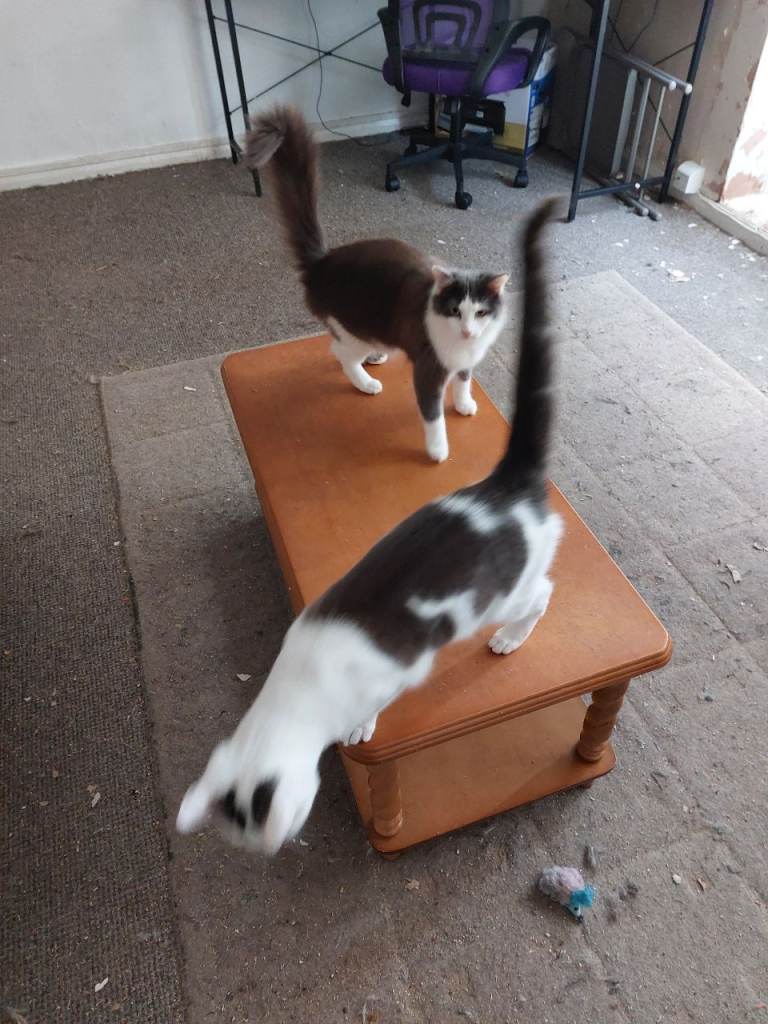 2 Georges British longhair cross kitties looking for they forever home. Toilet trained eating normal cat food. Both of them is boy black one is £250 long hair white is £200 short hair