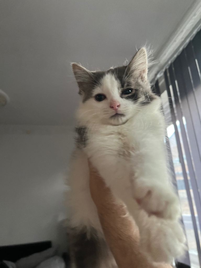 Fluffy grey n white kitten: Girl