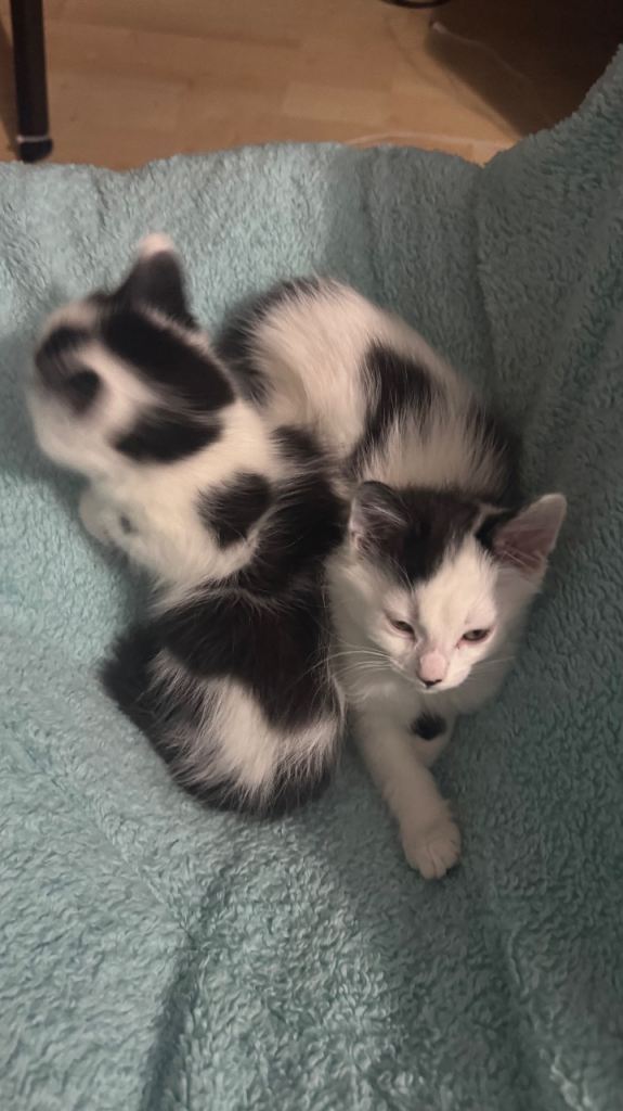A sweet kitten is looking for caring owners. 2 months old. He is healthy, eats independently, and is litter box trained. His color is black and white.
