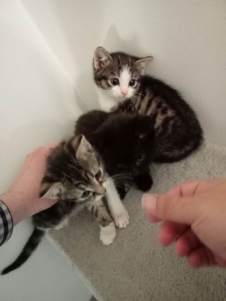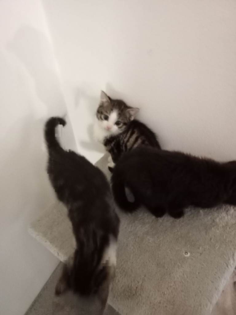 I have 2 beuitful tabby cats and 1 black cat one tabby is a boy and others a girl and black one is also a girl brilliant with children as have been around them litter trained may make mistakes on first week in new home but will soon adjust