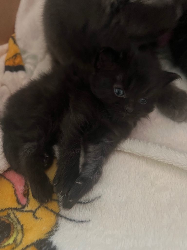 Mum is a big fluffy grey girl Dad is a black maincoon . This is my girls 1st and last litter