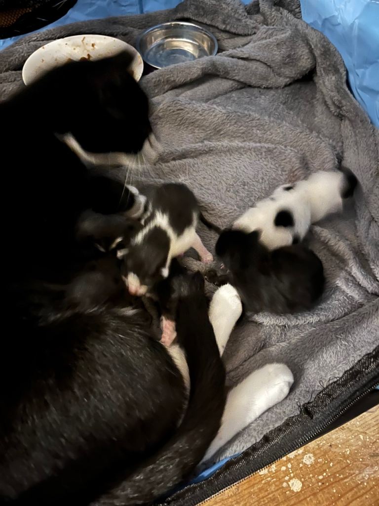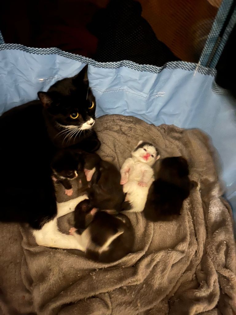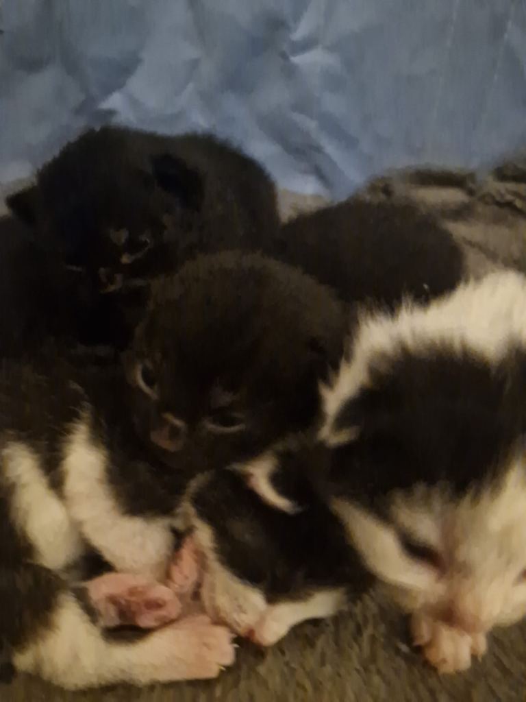 We have 5 beautiful mixed breed kittens for sale. They were born on the 24th January. There are two pure black kittens, one black with white nose/chest and paws, one half white and black and one white with black patches. We are hoping to find their forever homes for when they are ready to leave mum. They will be litter trained and weaned. Please only content me if you are serious as I want these kittens to have the best in life. Thank you.