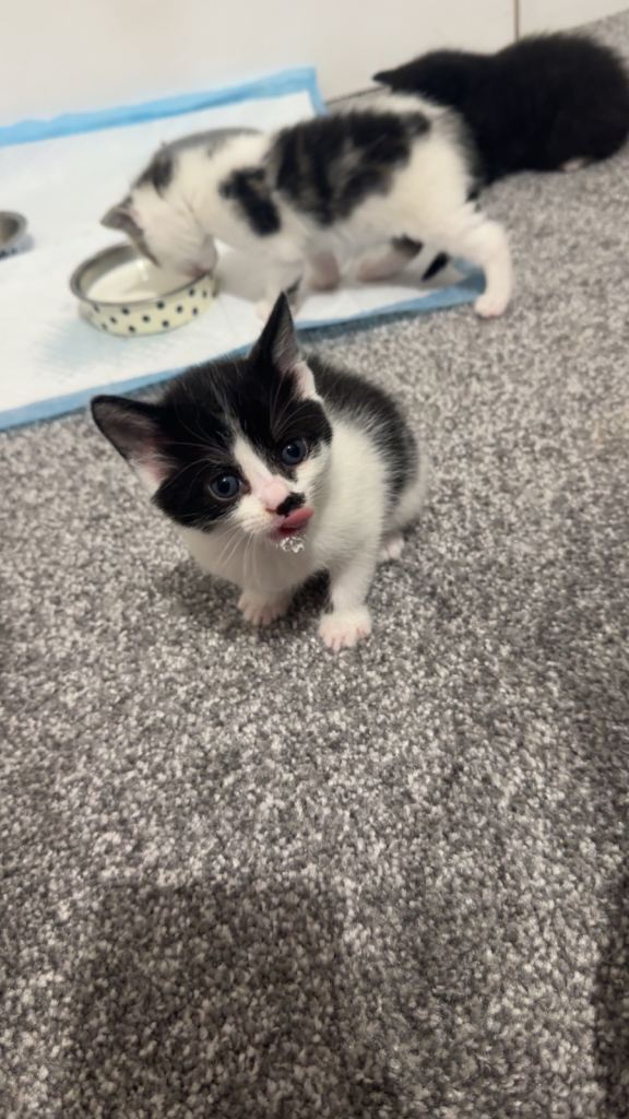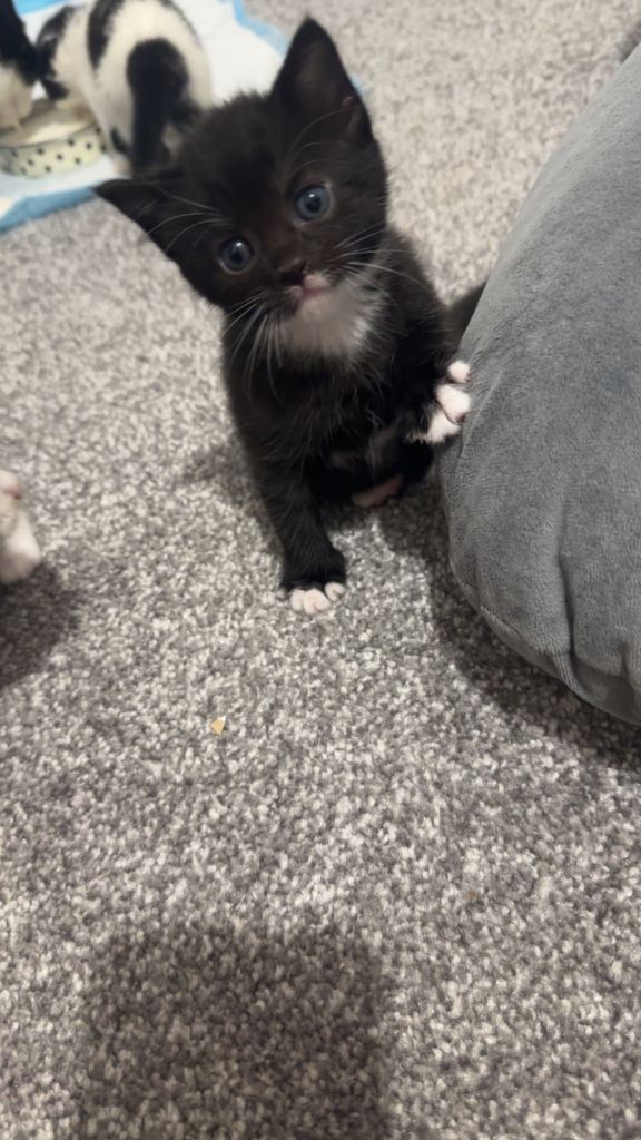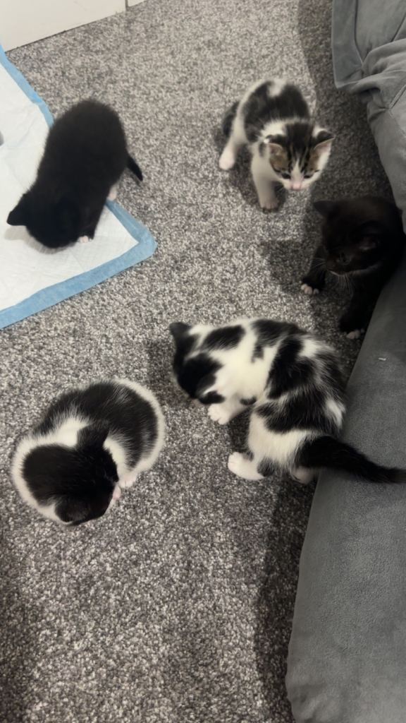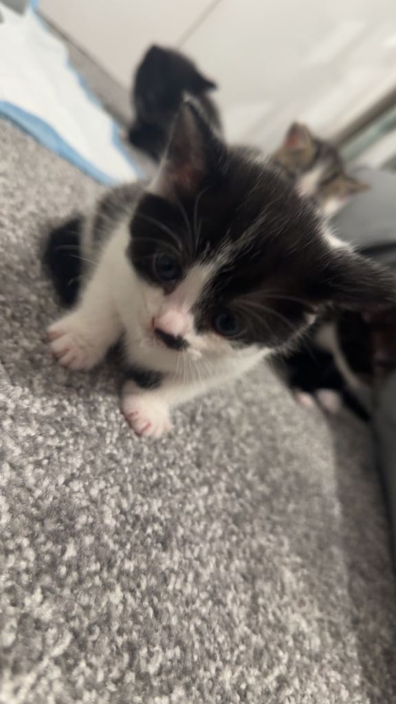 I have 5 kittens for sale. 1 x tabby, 2 x white and back and 2 x black with white socks.
