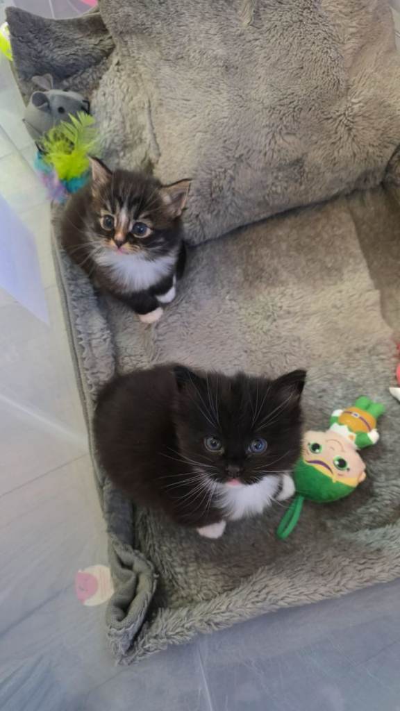 Both are 8 weeks ready eating drinking and using litter tray