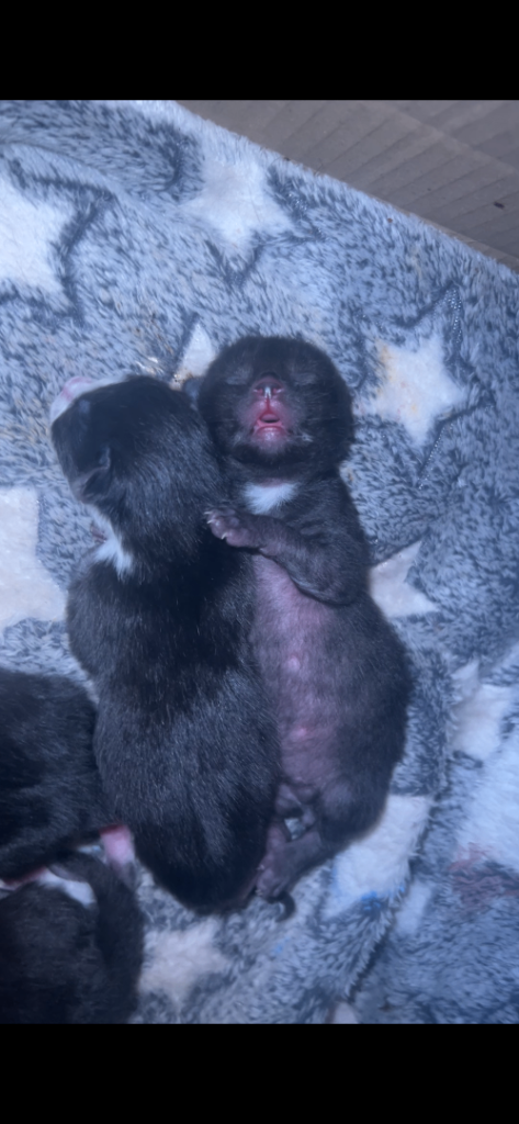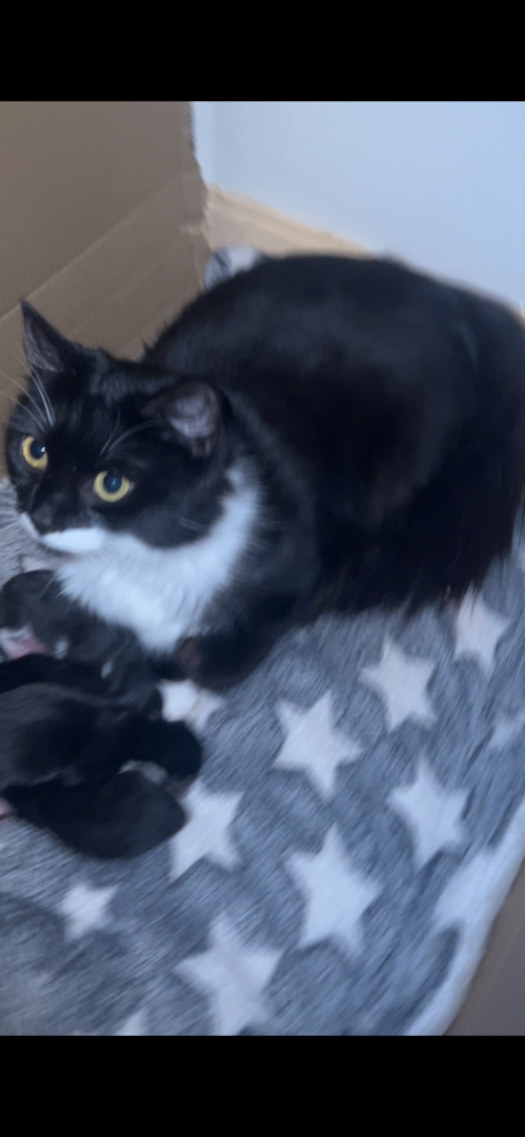 2 plain black and 2 are tuxedos like mum.