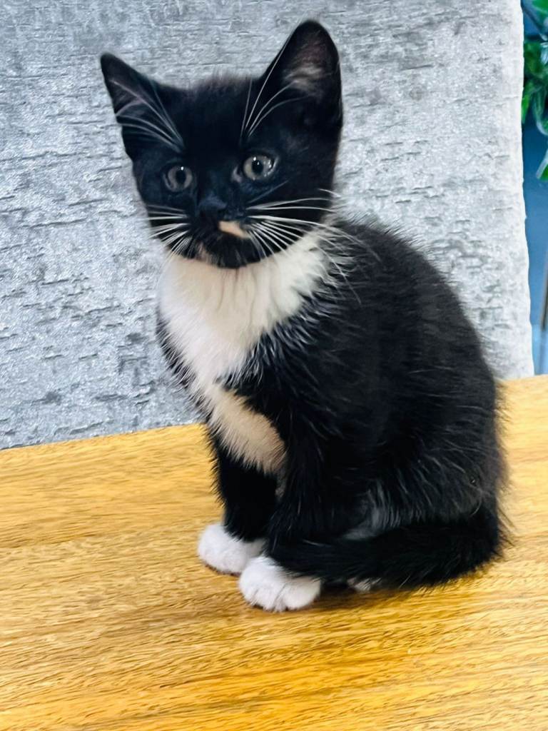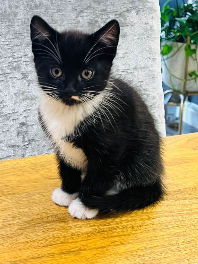 Kitten 1 male black and white super friendly and had a very quirky personality cute in his own unique way.