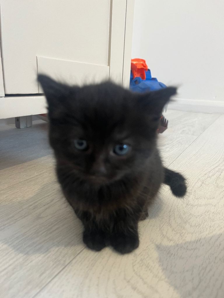 Very friendly, litter trained and weaned. Eating biscuits and meat now.