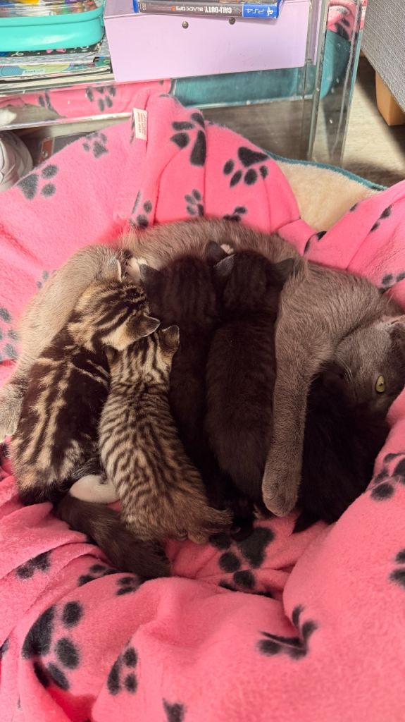 The kittens are currently 4 weeks old and will be ready in another 3 weeks. Two of the kittens have already been reserved one of the tabby and one of the black kittens have been reserved. Messsage for more information. (ALL HAVE BEEN RESERVED)