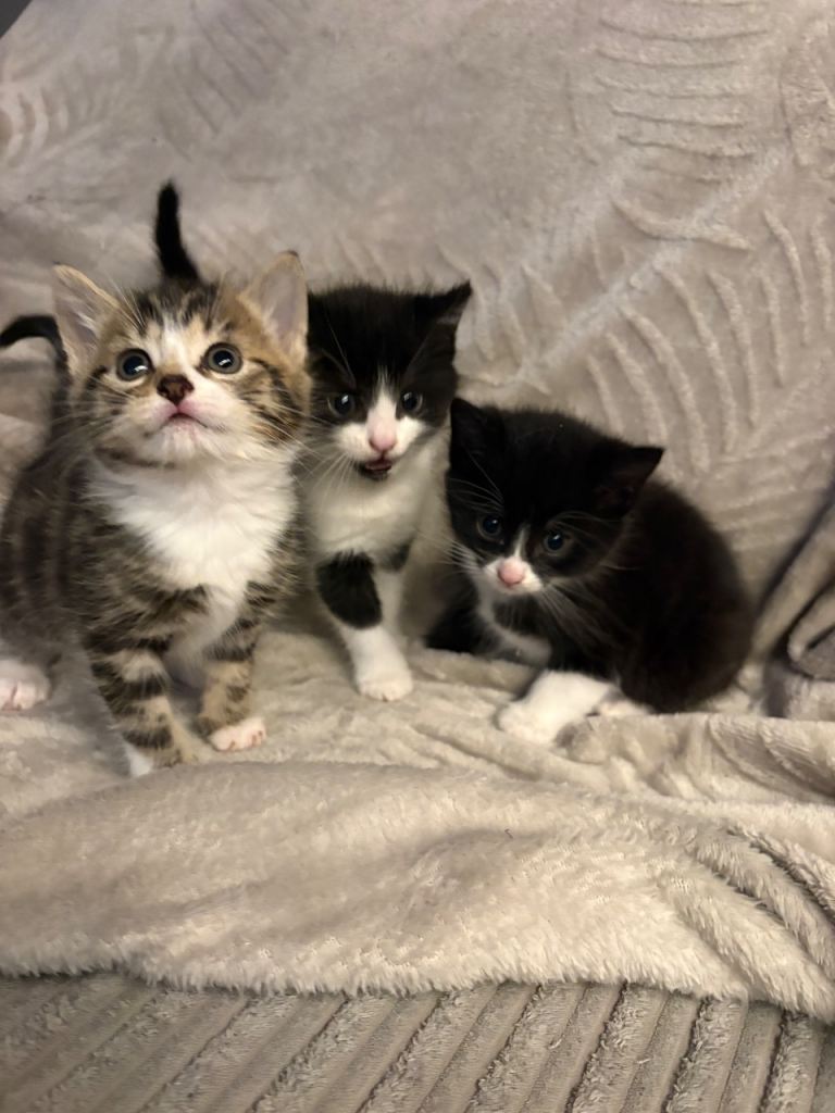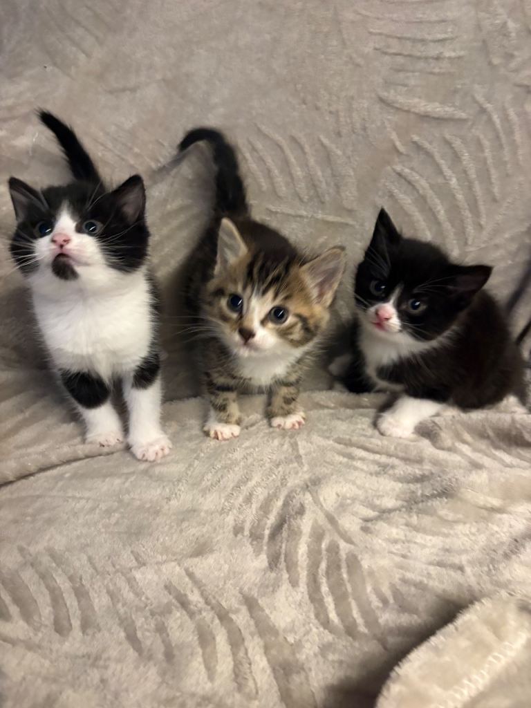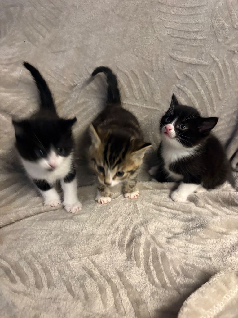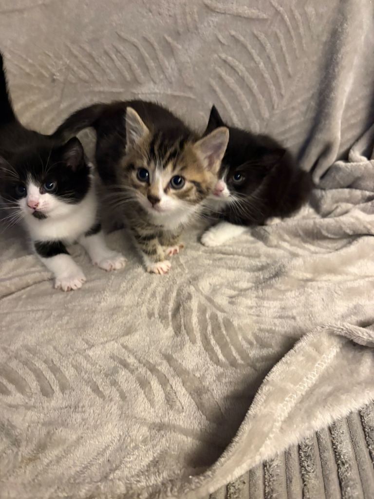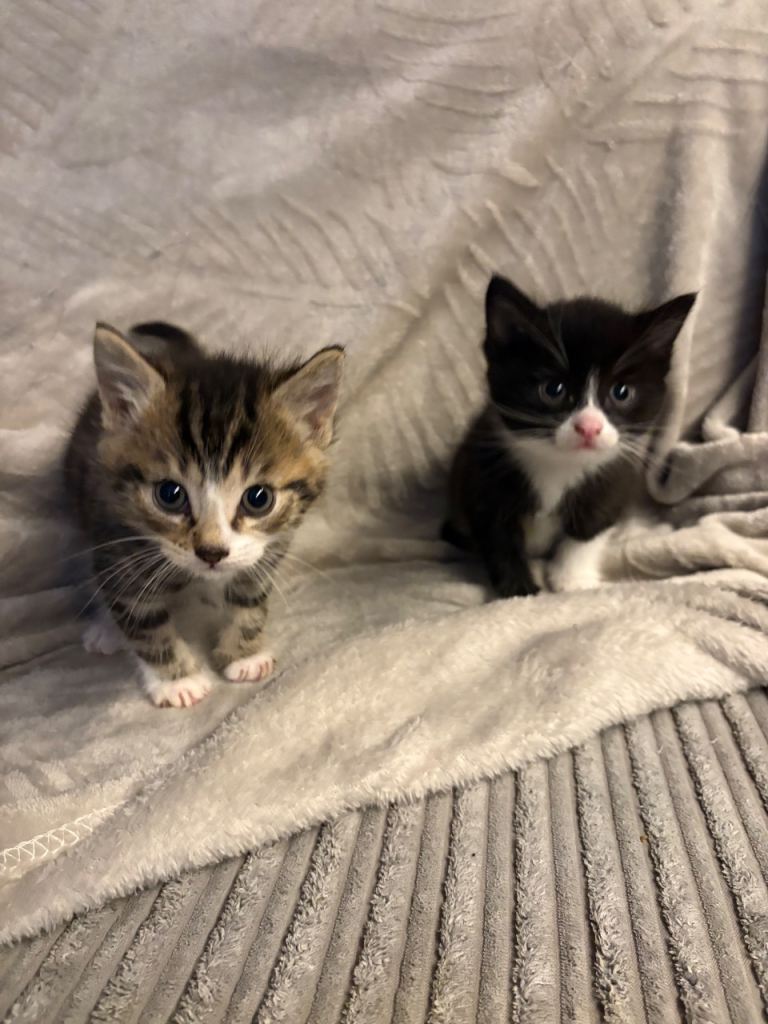 Short haired kittens . Very friendly, good with kids and other pets . Litter trained and eating wet food . Ready to leave to their new home now .
